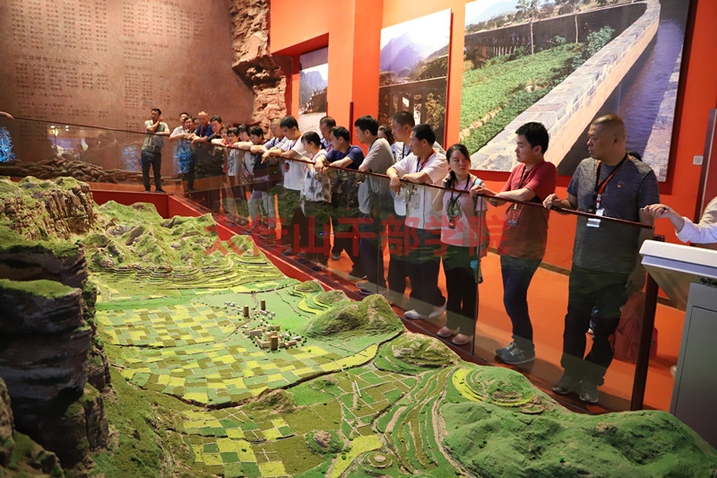 紅旗渠紀(jì)念館不僅是一座以研究、展示、傳承、收藏紅旗渠歷史的一座展館。也是我們學(xué)員感悟“自力更生、艱苦創(chuàng)業(yè)”的紅旗渠精神的一個(gè)重要窗口。學(xué)員們在展館前留念,并進(jìn)行現(xiàn)場教學(xué)。