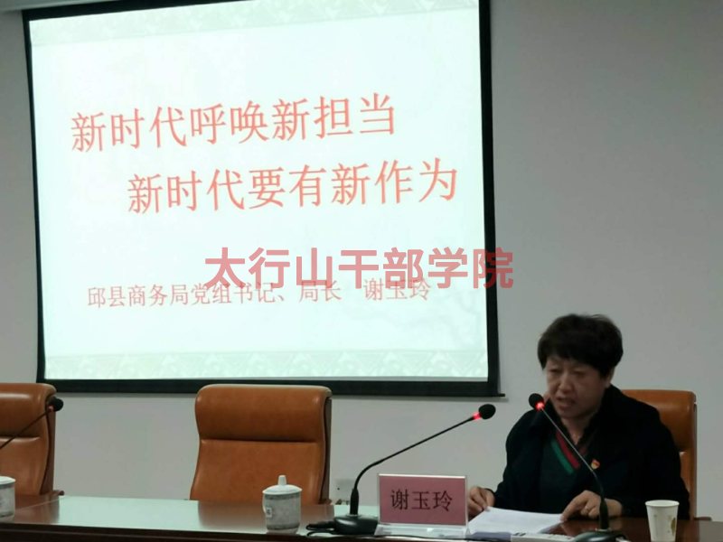 峰峰礦區(qū)經(jīng)貿(mào)工委原書記杜良盛、邱縣商務局局長謝玉玲作分別作了事跡報告《展現(xiàn)新?lián)敚瑢崿F(xiàn)新作為》和《新時代呼喚新?lián)?,新時代要有新作為》。